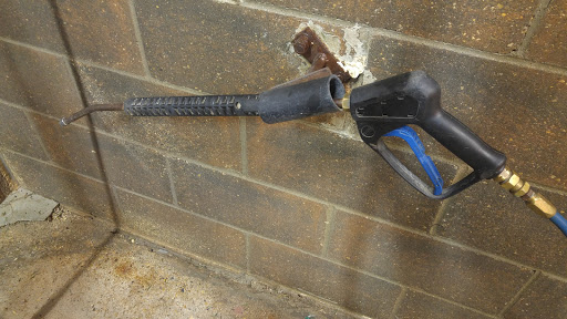 Old school coin operated car wash. A display of time remaining would be helpful.